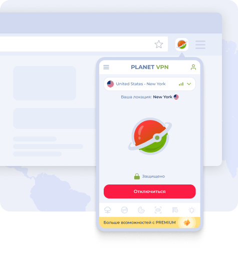 - в браузерной панели нажать на кнопку Planet VPN;